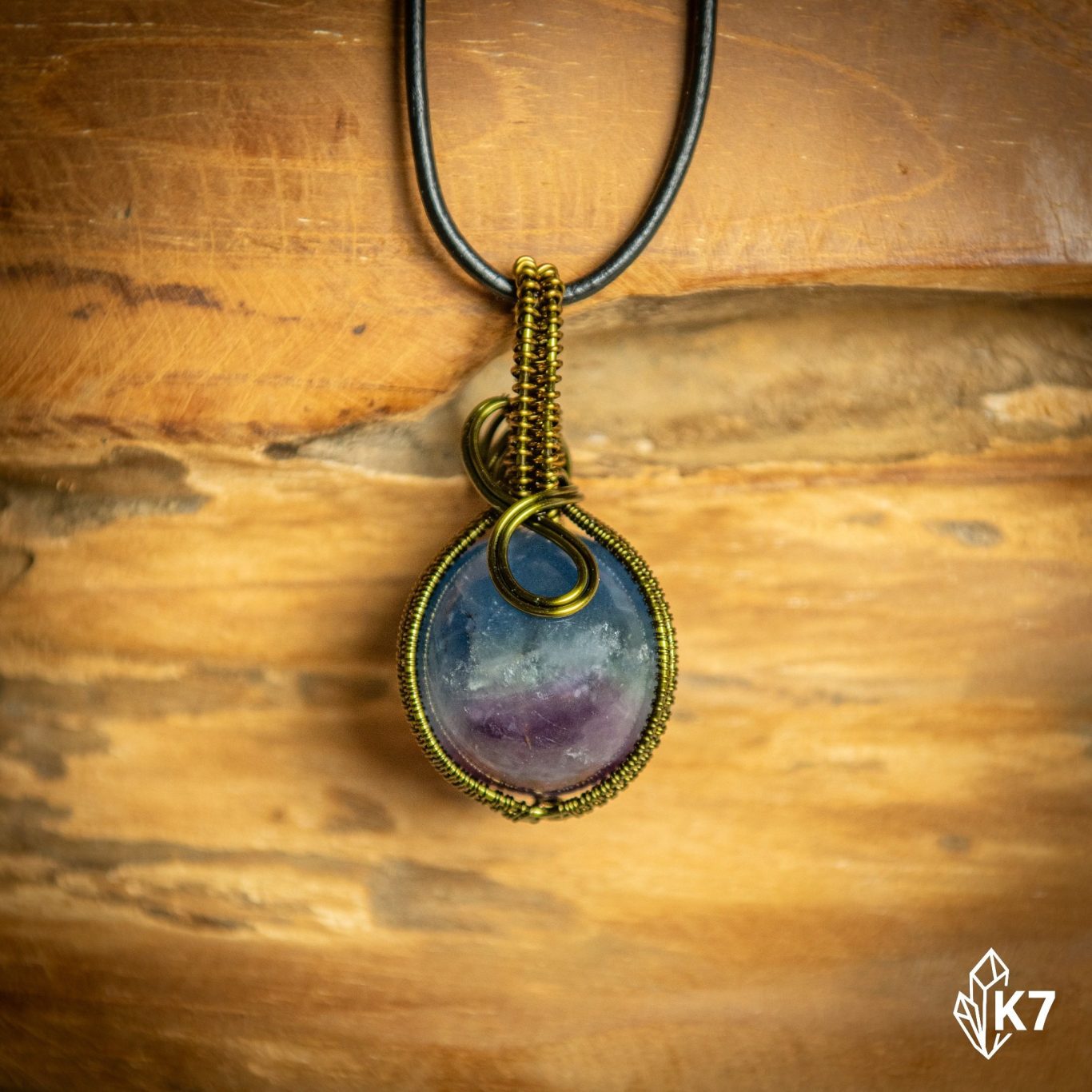 in der Wire Wrapping Technik verarbeitet. Je nach Design ist die Fluoritkugel dabei in der Drahtfassung frei drehbar, was diese charakteristischen Farbverläufe des Fluorits besonders gut zur Geltung bringt und für eine harmonische, elegante Optik sorgt. Es entsteht eine Dynamik, die das Schmuckstück noch außergewöhnlicher macht.