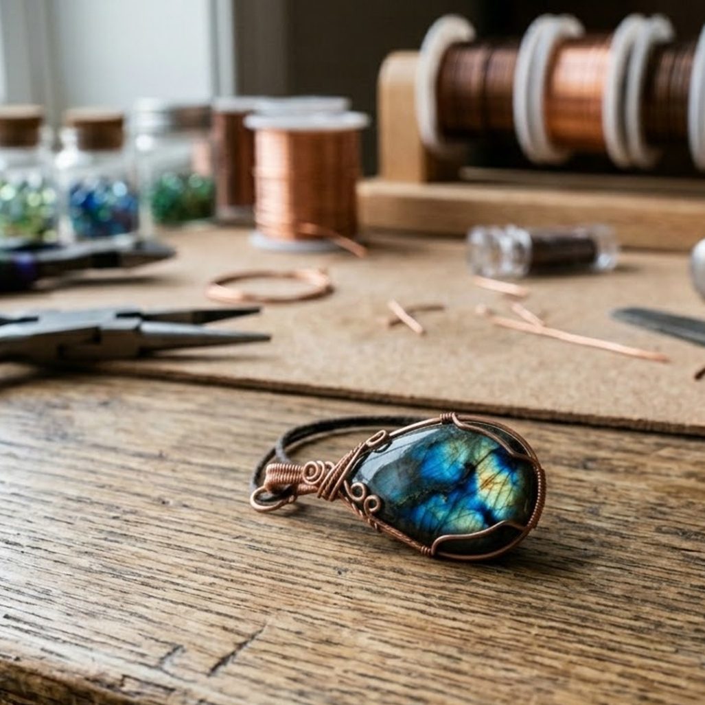 Labradorit im handgefertigten Drahtschmuck